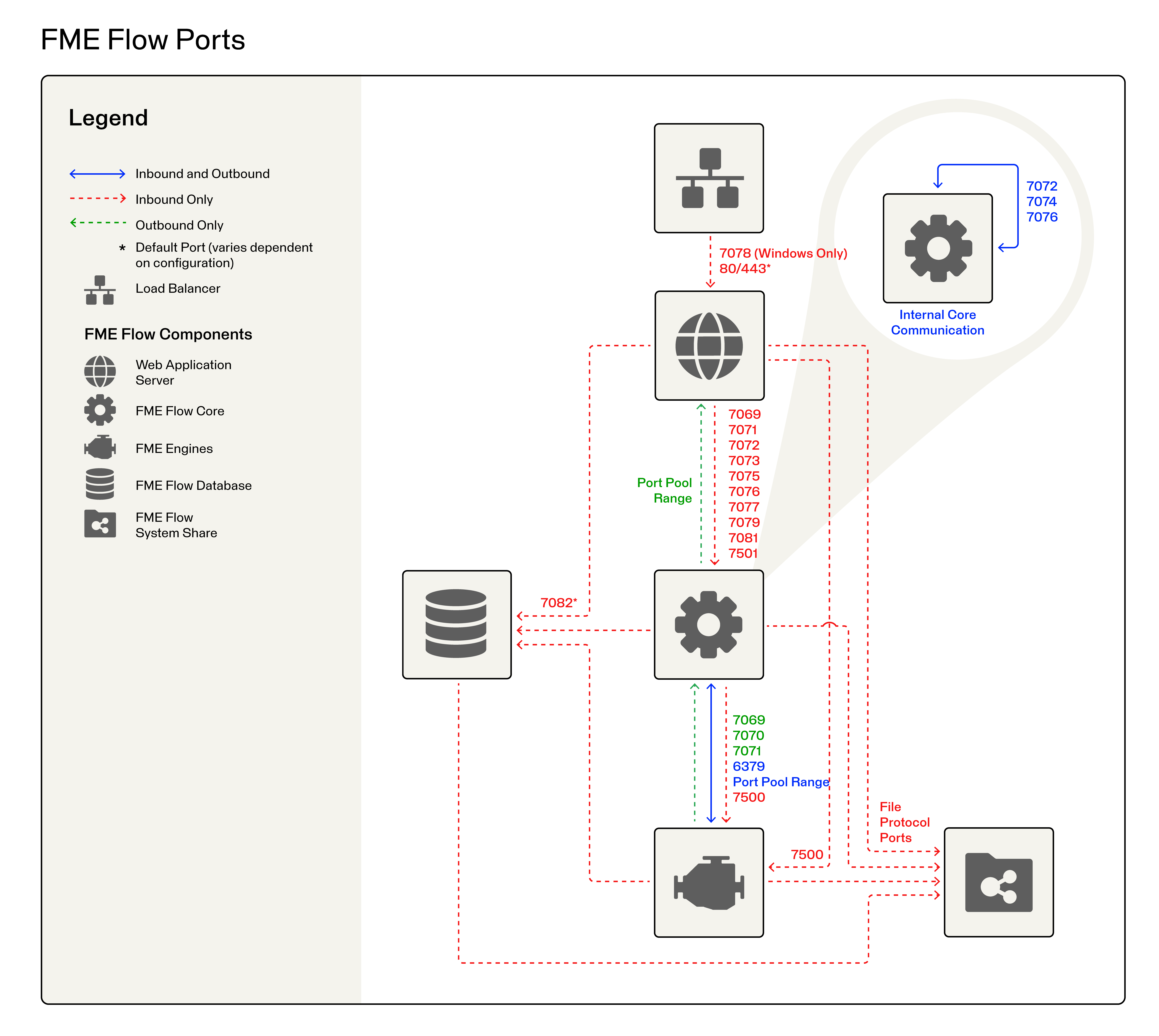 | 7077 | FME Flow configuration and Backup & Restore requests. | FMEConfiguration.exe | FMEConfiguration |